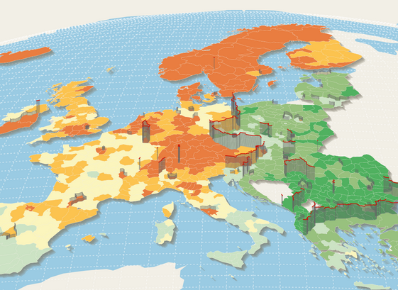 Cet article suit plusieurs objectifs. Tout d’abord, il montre qu’il est possible de réaliser une belle carte d’édition joliment mise en page entièrement avec R, sans passer par un logiciel de DAO. Elle vise aussi à montrer comment, avec une projection cartographique adéquate, faire varier la hauteur des frontières pour exprimer les valeurs de discontinuités.