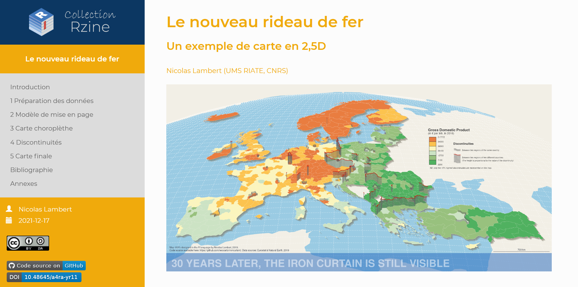 C’est à partir de 2019 que les membres du projet Rzine se sont lancés dans la création d’une revue d’articles en format notebook, qui permet de valoriser des traitements et des analyses reproductibles réalisés avec R. La revue Rzine offre ainsi la possibilité de publier des articles de méthodes, ancrés dans une thématique de SHS et mises en application en R de manière intelligible. Chaque article fait l’objet d’une évaluation thématique et technique par les pairs ouverte, qui assure sa pérennité et son intérêt pour les différentes disciplines de SHS.
